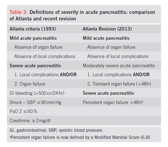 - معظم أنظمة توقع شدة إلتهاب البنكرياس الحاد حتى الحديث منها تعتبر مرهقة ومزعجة للطبيب الممارس ، وتحتاج مرور 48 ساعة للحصول على الموثوقية ، في حين قد تكون الحالة السريرية للمريض بعد مرور 48 ساعة هي أفضل طريقة لتوقع شدة المرض
