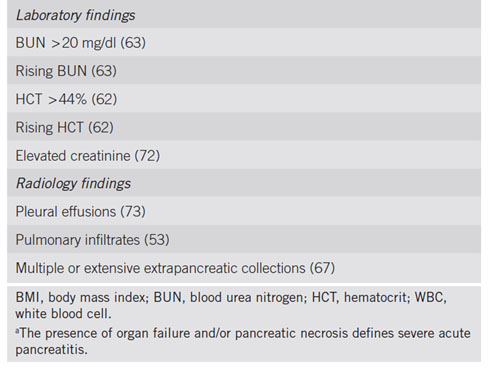 - يحتفظ به لمرضى التهاب البنكرياس الحاد الذين يظهرون عدم تحسن سريري بعد 48-72 ساعة من القبول ( إستمرار الألم، حمى، قمه، عدم القدرة على بدء تناول الطعام )