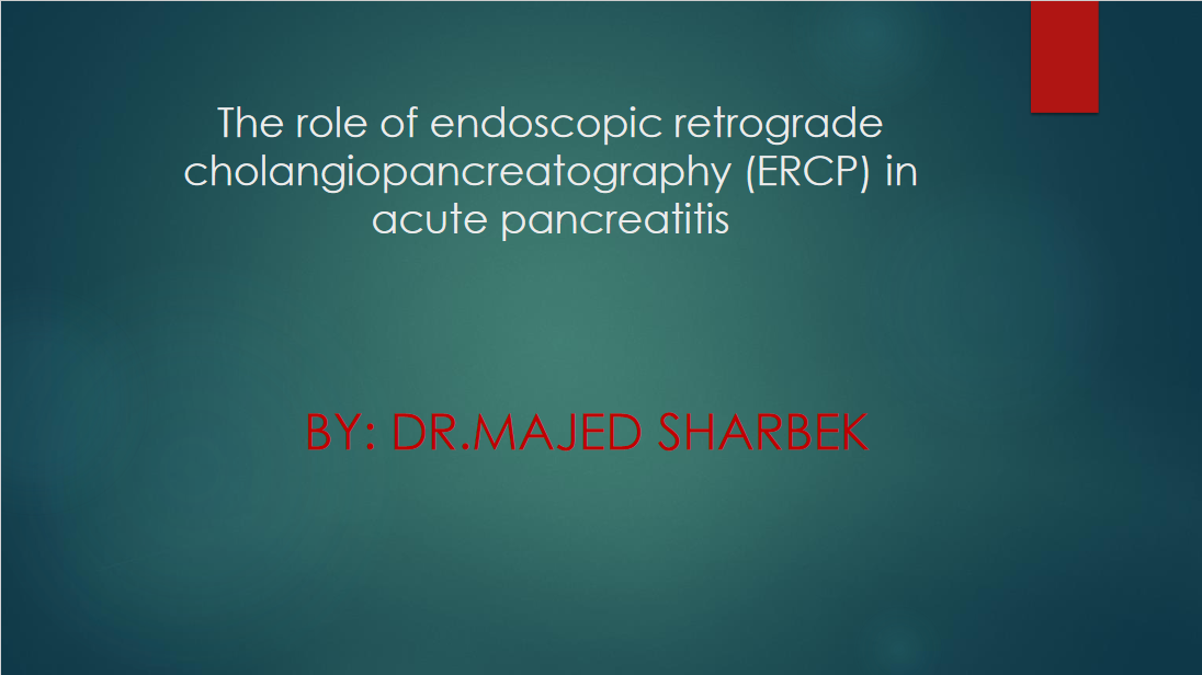The role of endoscopic retrograde cholangiopancreatography (ERCP) in acute pancreatitis محاضرة للدكتور ماجد شربك The role of endoscopic retrograde cholangiopancreatography…