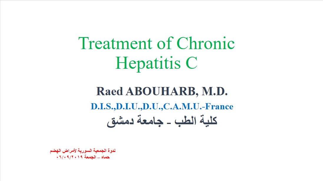 Treatment of Chronic Hepatitis C محاضرة للدكتور رائد أبو حرب Treatment of Chronic Hepatitis Cتنزيل